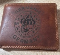 Hier können individuelle Produkte hergestellt werden wie dieser Gürtel für den SV Hoch Weisel mit einer gelben Handnaht zu schwarzem Leder was die Vereinsfarben darstellt. Auch Handelsware kann gelasert werden um grössere Stückzahlen zu erzeugen wie die Geldbörse für einen Motorrad Club. Benötigt wird dazu lediglich eine vernünftige Bilddatei zum bearbeiten, der Rest ist Absprache mit uns.